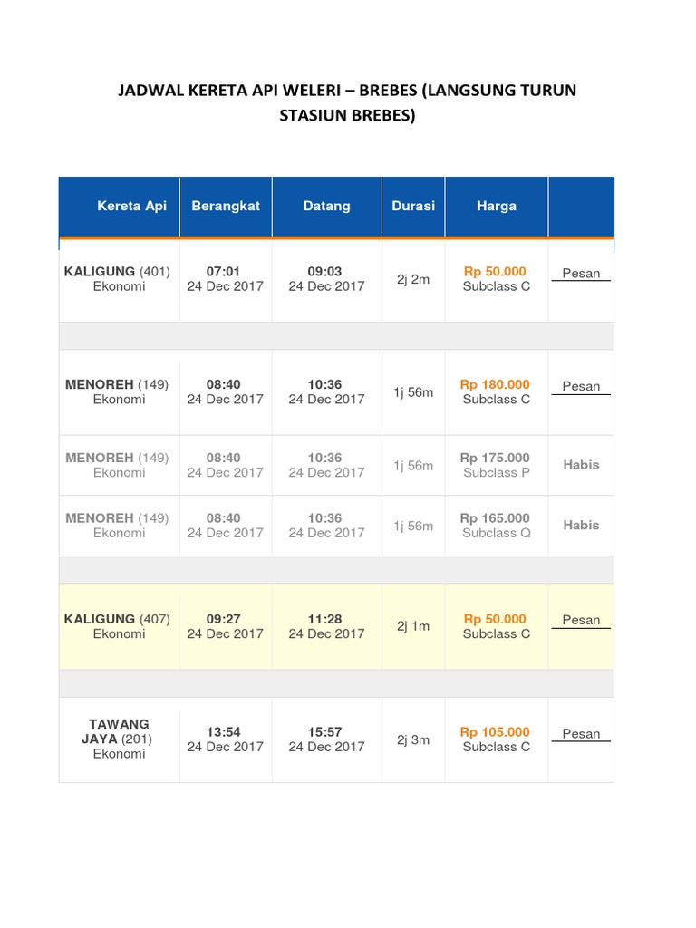 Yuk, kita lihat jadwal tiket kereta api supaya enggak kehabisan tiket mudik! Kereta api ekonomi semarang tegal brebes dan brebes tegal semarang adalah jenis kereta api kelas ekonomi ac non subsidi. Kereta api kaligung merupakan layanan kereta api lokal komersil jarak menengah. Ini memang tugas kereta api indonesia. Tawang 03:49 05:32 rp 105.000 pesan jaya (202) 1j 43m 25 dec 2017 25 dec 2017 subclass c ekonomi.